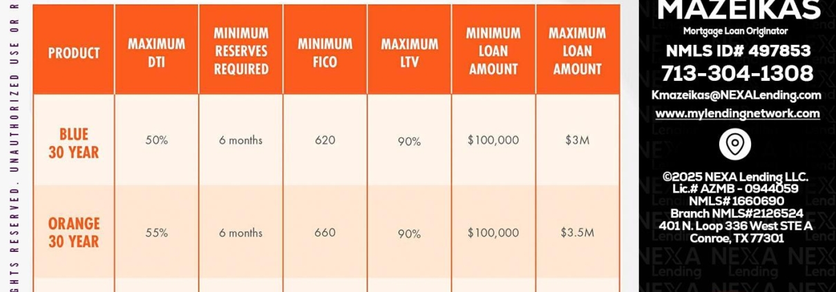 30 YEARS OPTIONS - Kyle Mazeikas -Branch Manager / Mortgage AdvisorHi, my name is Kyle Mazeikas. I’m a Loan Officer with NEXA Lending LLC., offering personalized mortgage solutions, fast customized quotes, great rates and service with integrity.