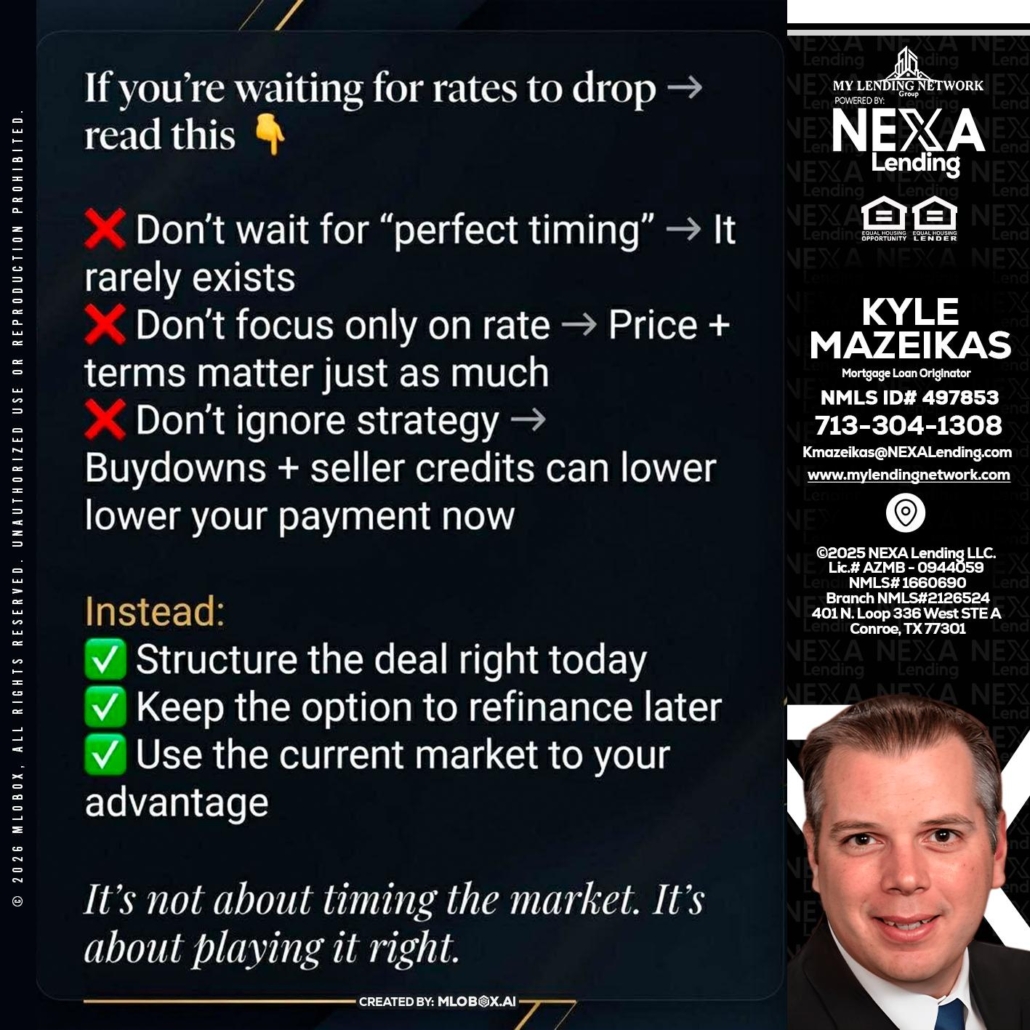 Hi, my name is Kyle Mazeikas. I’m a Loan Officer with NEXA Lending LLC., offering personalized mortgage solutions, fast customized quotes, great rates and service with integrity.