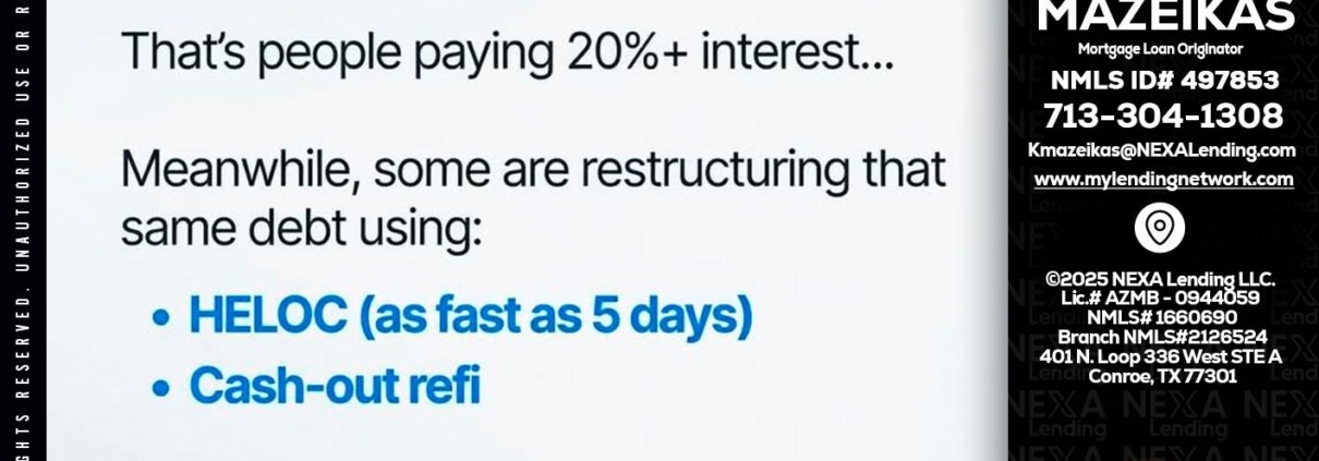 JUST IN - Kyle Mazeikas -Branch Manager / Mortgage AdvisorHi, my name is Kyle Mazeikas. I’m a Loan Officer with NEXA Lending LLC., offering personalized mortgage solutions, fast customized quotes, great rates and service with integrity.