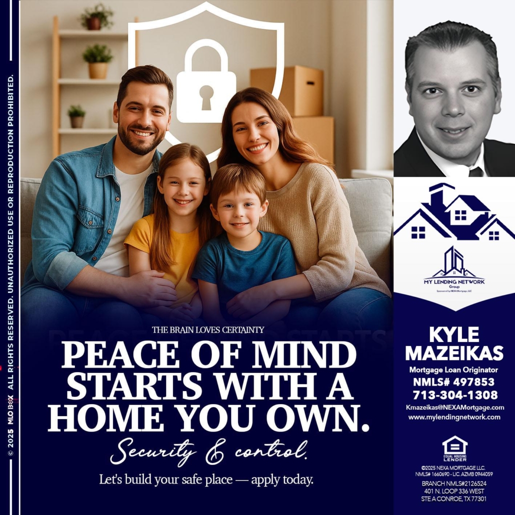 peace of mind - Kyle Mazeikas -Branch Manager / Mortgage AdvisorHi, my name is Kyle Mazeikas. I’m a Loan Officer with NEXA Mortgage LLC., offering personalized mortgage solutions, fast customized quotes, great rates and service with integrity.