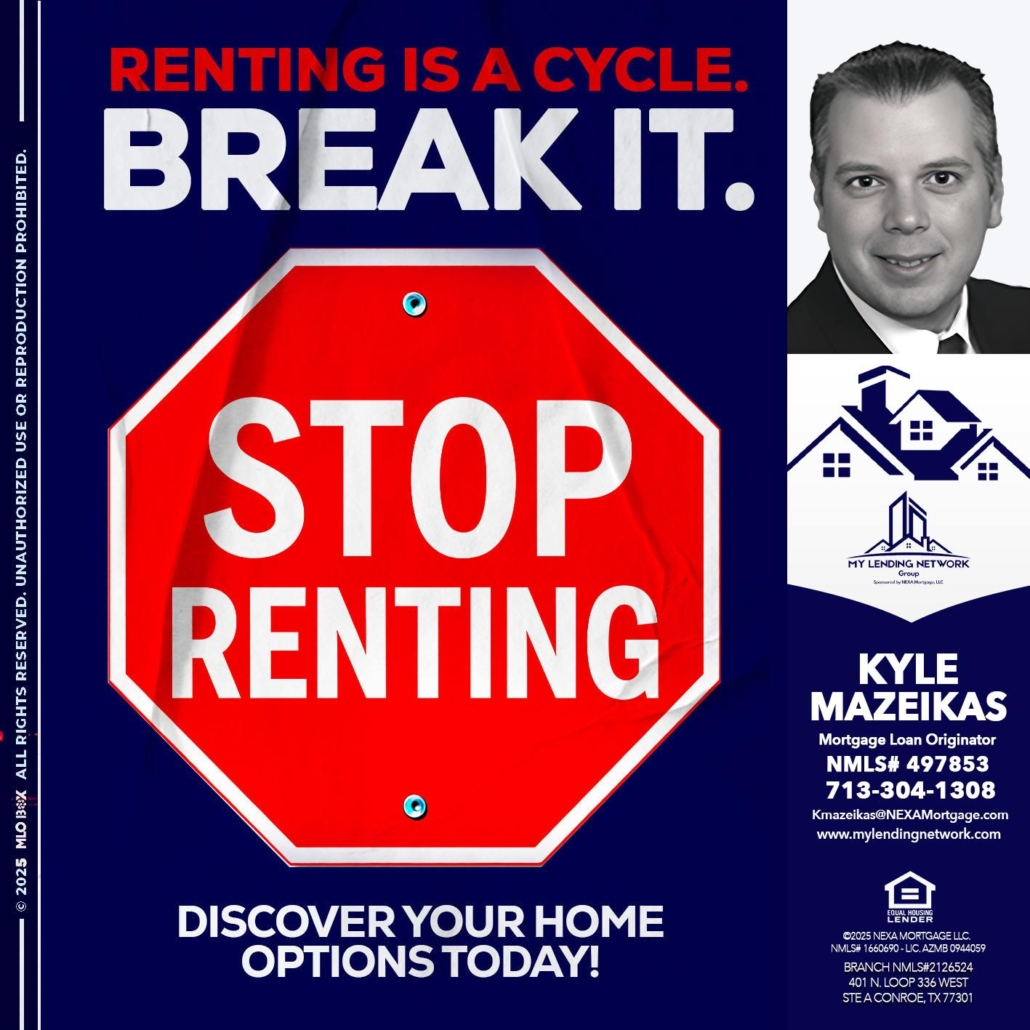 STOP RENTING - Kyle Mazeikas -Branch Manager / Mortgage AdvisorHi, my name is Kyle Mazeikas. I’m a Loan Officer with NEXA Mortgage LLC., offering personalized mortgage solutions, fast customized quotes, great rates and service with integrity.