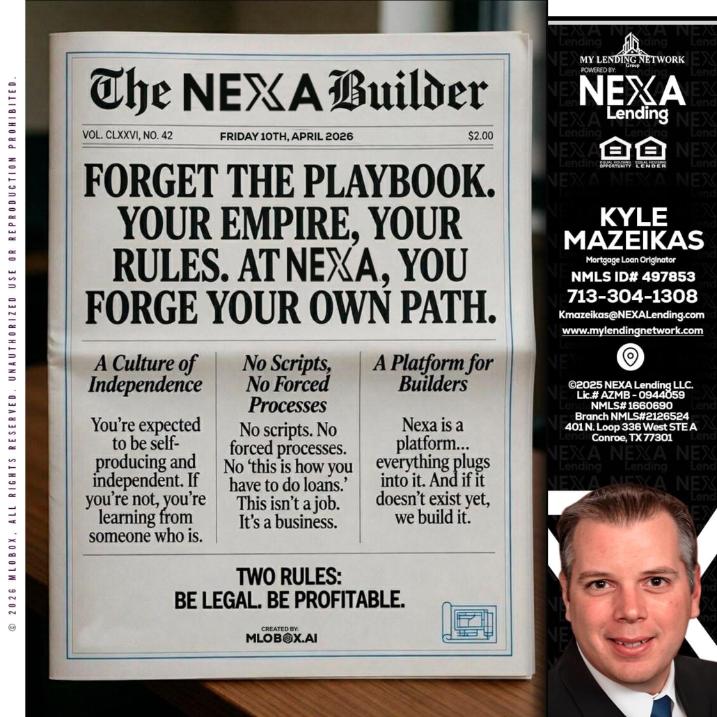 Hi, my name is Kyle Mazeikas. I’m a Loan Officer with NEXA Lending LLC., offering personalized mortgage solutions, fast customized quotes, great rates and service with integrity.