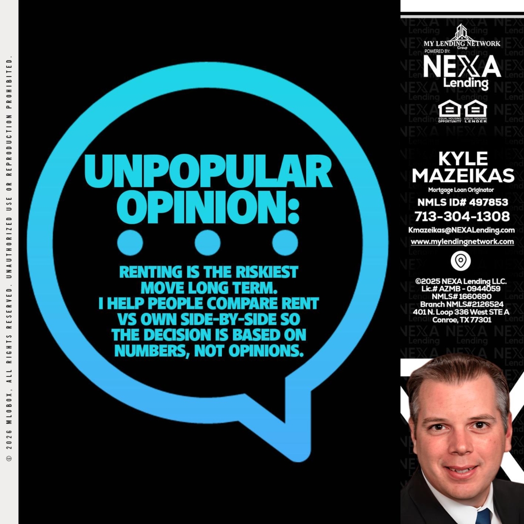 Hi, my name is Kyle Mazeikas. I’m a Loan Officer with NEXA Lending LLC., offering personalized mortgage solutions, fast customized quotes, great rates and service with integrity.