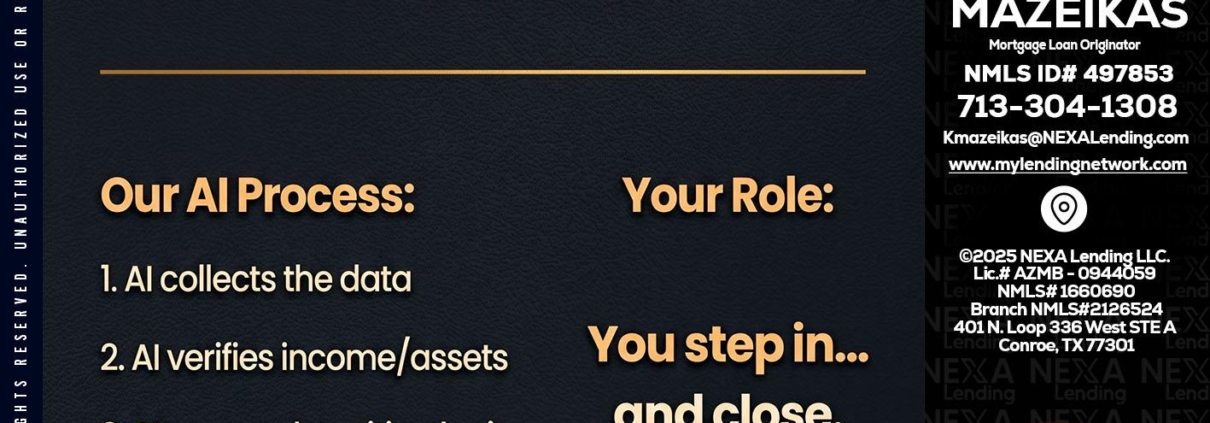 Hi, my name is Kyle Mazeikas. I’m a Loan Officer with NEXA Lending LLC., offering personalized mortgage solutions, fast customized quotes, great rates and service with integrity.
